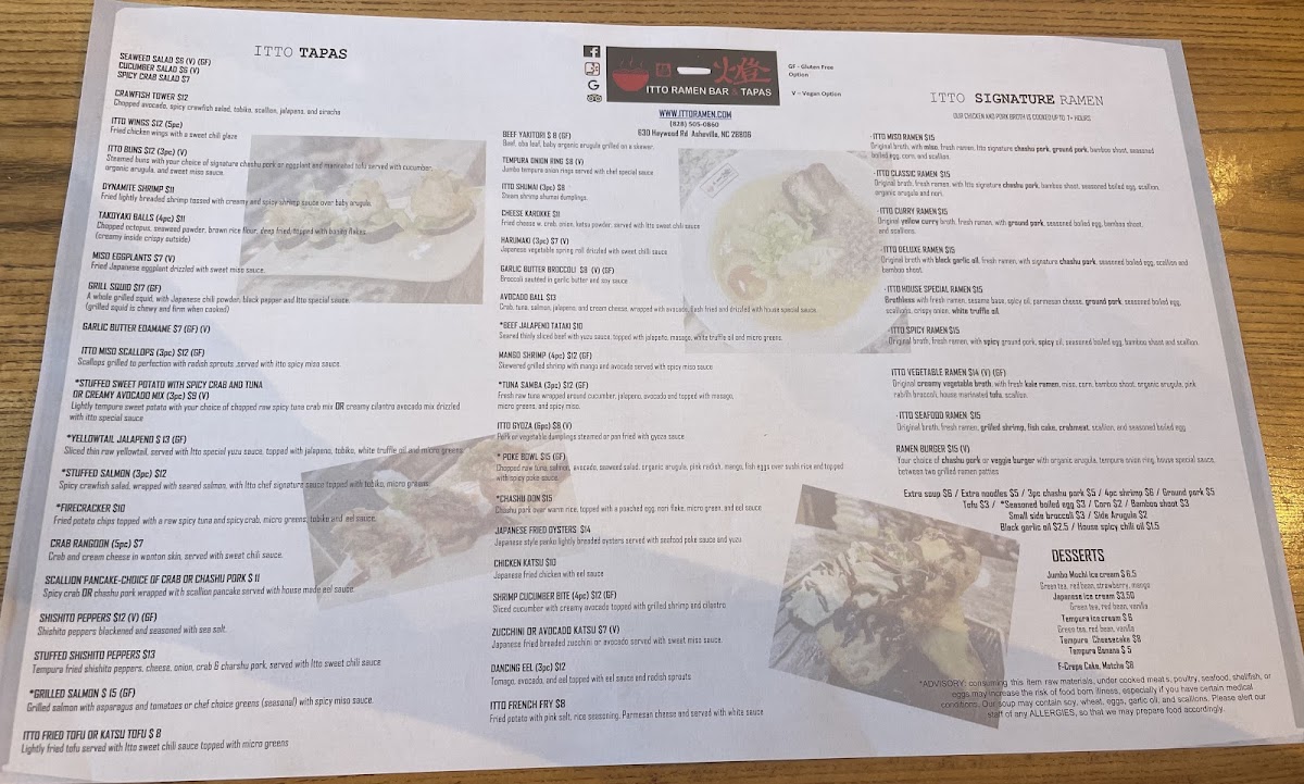 Welcome to Itto Ramen Bar & Tapas, a culinary gem located at 630 Haywood Rd, Asheville, NC. This vibrant eatery presents a delightful fusion of traditional ramen and innovative tapas, catering to diverse palates and dietary preferences.